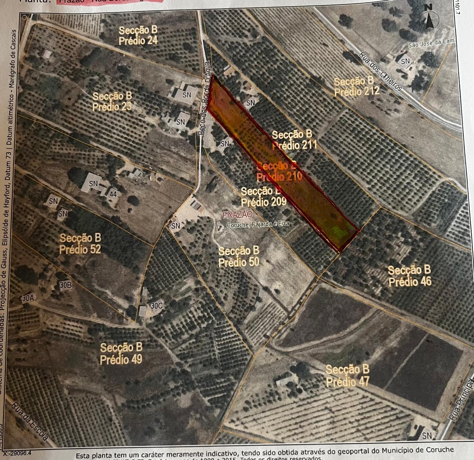 Terreno com 6.000 m², de configuração retangular, localizado a apenas 5 km de Coruche, na tranquila localidade de Frazão.